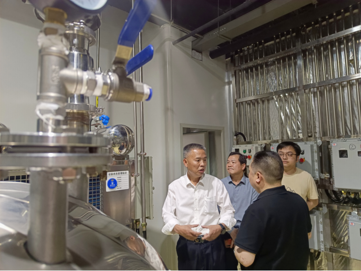4月10日,湖南省药品审核查验中心党总支书记、主任崔剑桥带队赴湖南浩森制药有限公司调研,湖南省药品审核查验中心党总支委员、副主任夏三牛陪同调研。